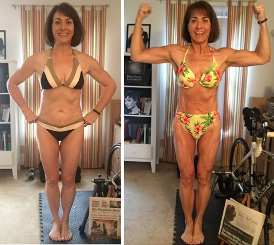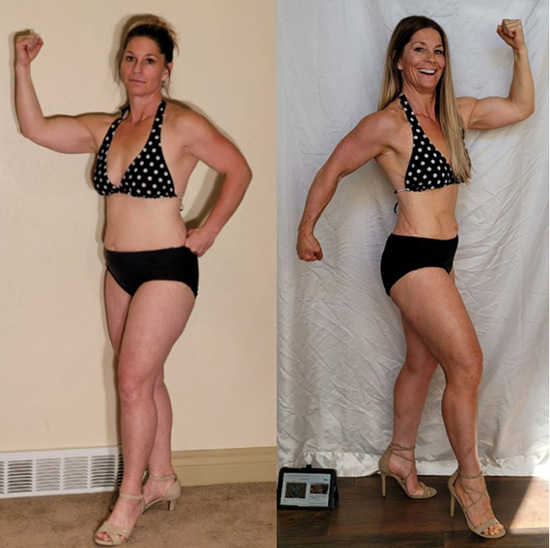 "I'm Kari, wife to the most amazing man and mom to three beautiful young adults. I did Tom Venuto's transformation challenge and I increased my lean muscle from 106 lbs to 116 lbs in 12 weeks and lost fat at the same time. I followed Tom's TNB Turbo and with the fast pace of these workouts, I've finally learned to enjoy my strength sessions. I can honestly say I love working out now! It's not a chore, it's a treat!"